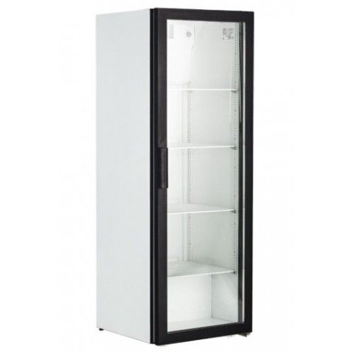 Холодильный шкаф со стеклянной дверью и механическим замком.
